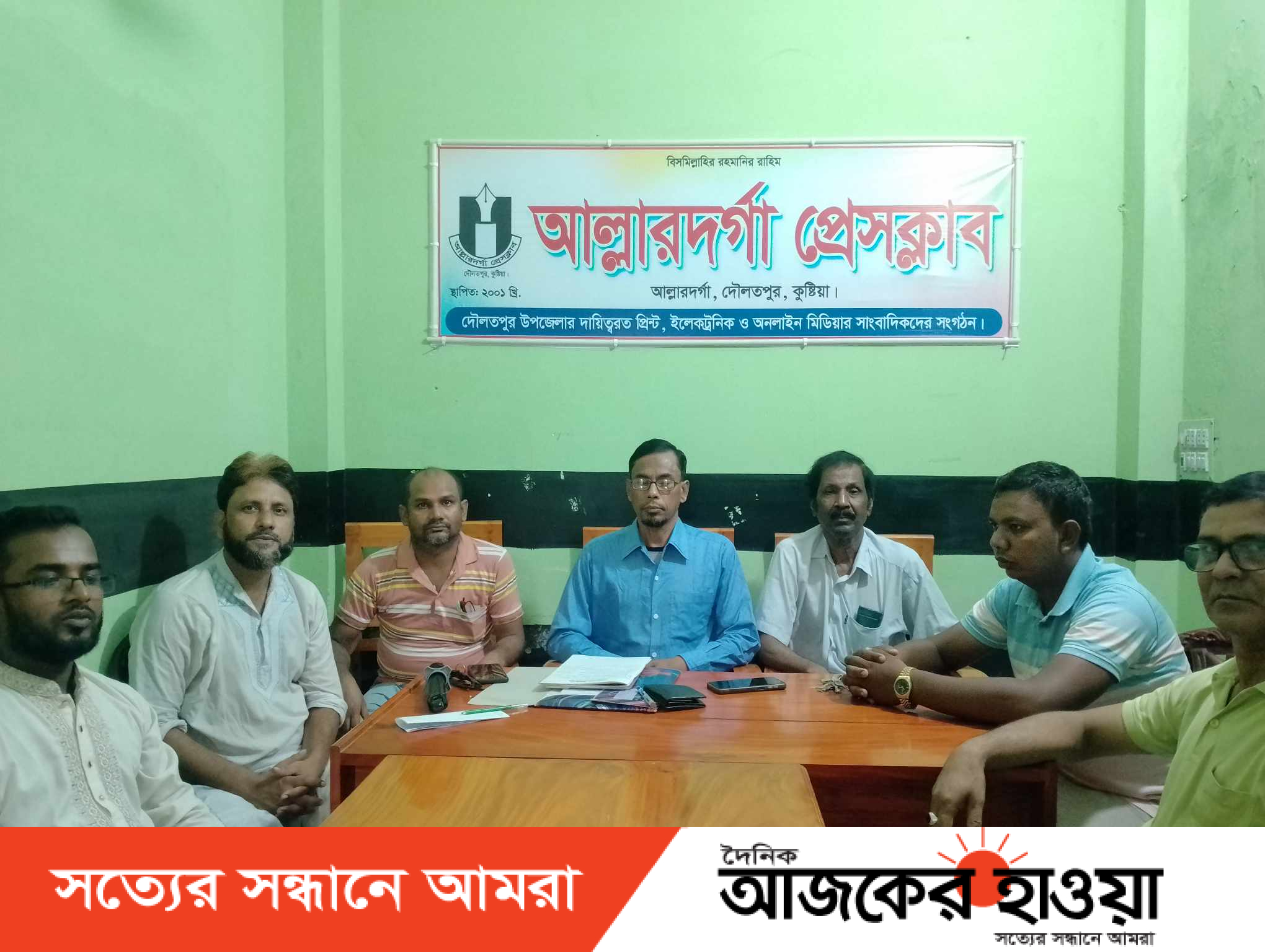 কুষ্টিয়ার দৌলতপুরের আল্লারদর্গা প্রেসক্লাবের মাসিক সভা অনুষ্ঠিত হয়েছে। শুক্রবার (১৬ আগষ্ট) সকাল ৯ টায় প্রেসক্লাবের মিলায়তনে এই সভা অনুষ্ঠিত হয়।
