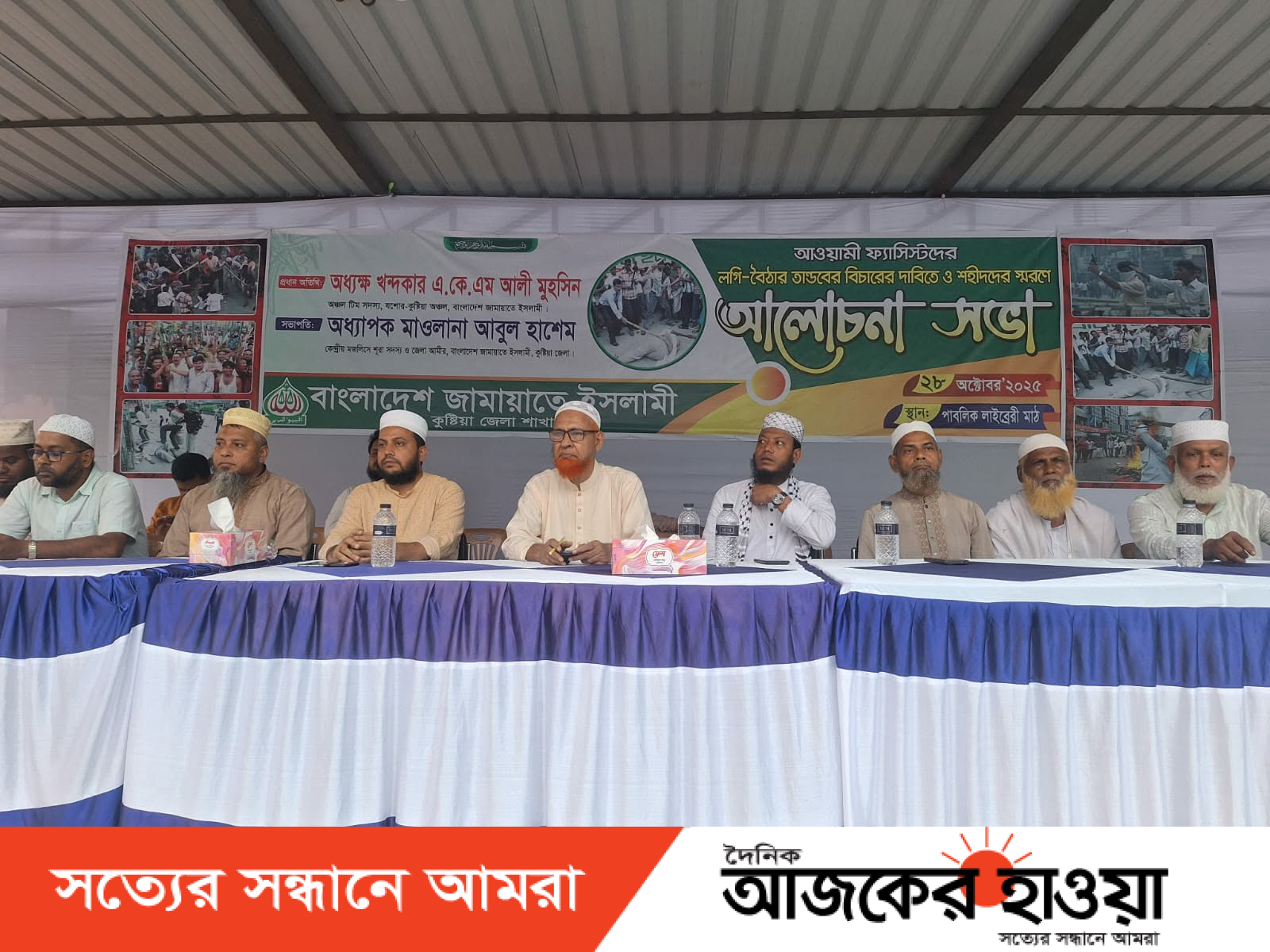 কুষ্টিয়া জেলা জামায়াতে ইসলামী’র আমীর মাওলানা আবুল হাসেমের সভাপতিত্বে অনুষ্ঠিত সমাবেশে প্রধান অতিথি ছিলেন দলটির কেন্দ্রীয় মজলিশে শুরা সদস্য ও যশোর অঞ্চলের টিম সদস্য একেএম আলী মোহসীন।
